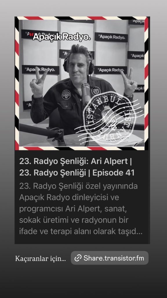 Living in Turkey since 2000, Alpert established a silkscreen studio, contributed to Istanbul’s contemporary art scene, and developed a democratic, collective, and expressive visual language that combines street art, pop art, and symbolic motifs. In addition to his visual art practice, he has performed as a DJ in various music scenes and has exhibited his work both in Turkey and internationally.