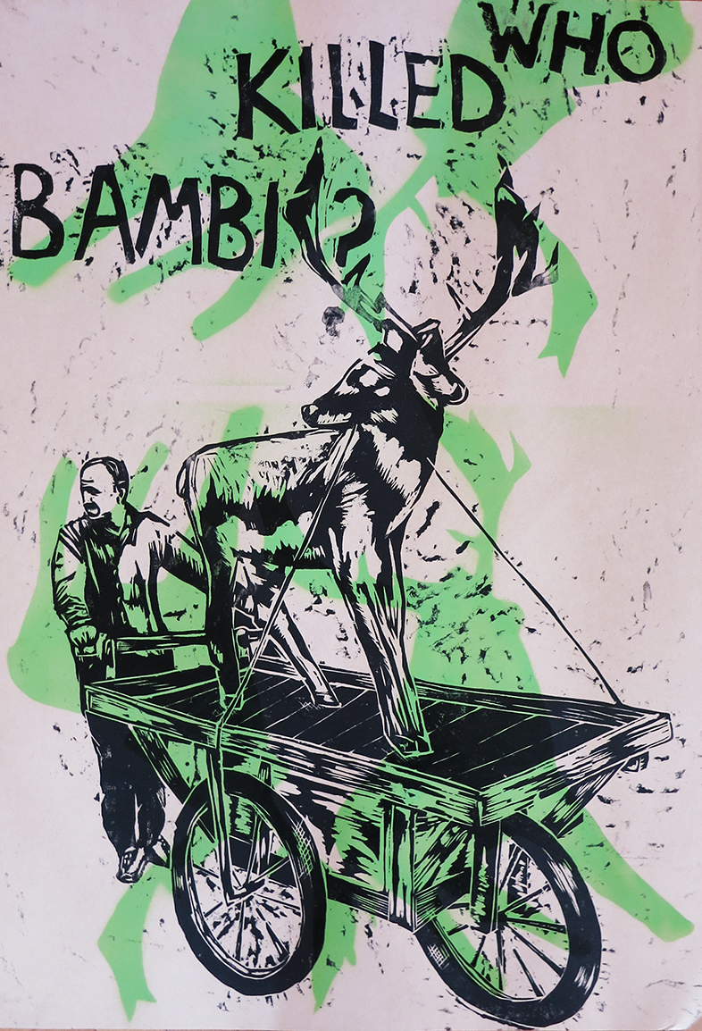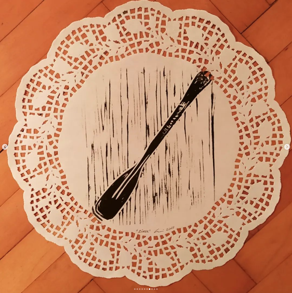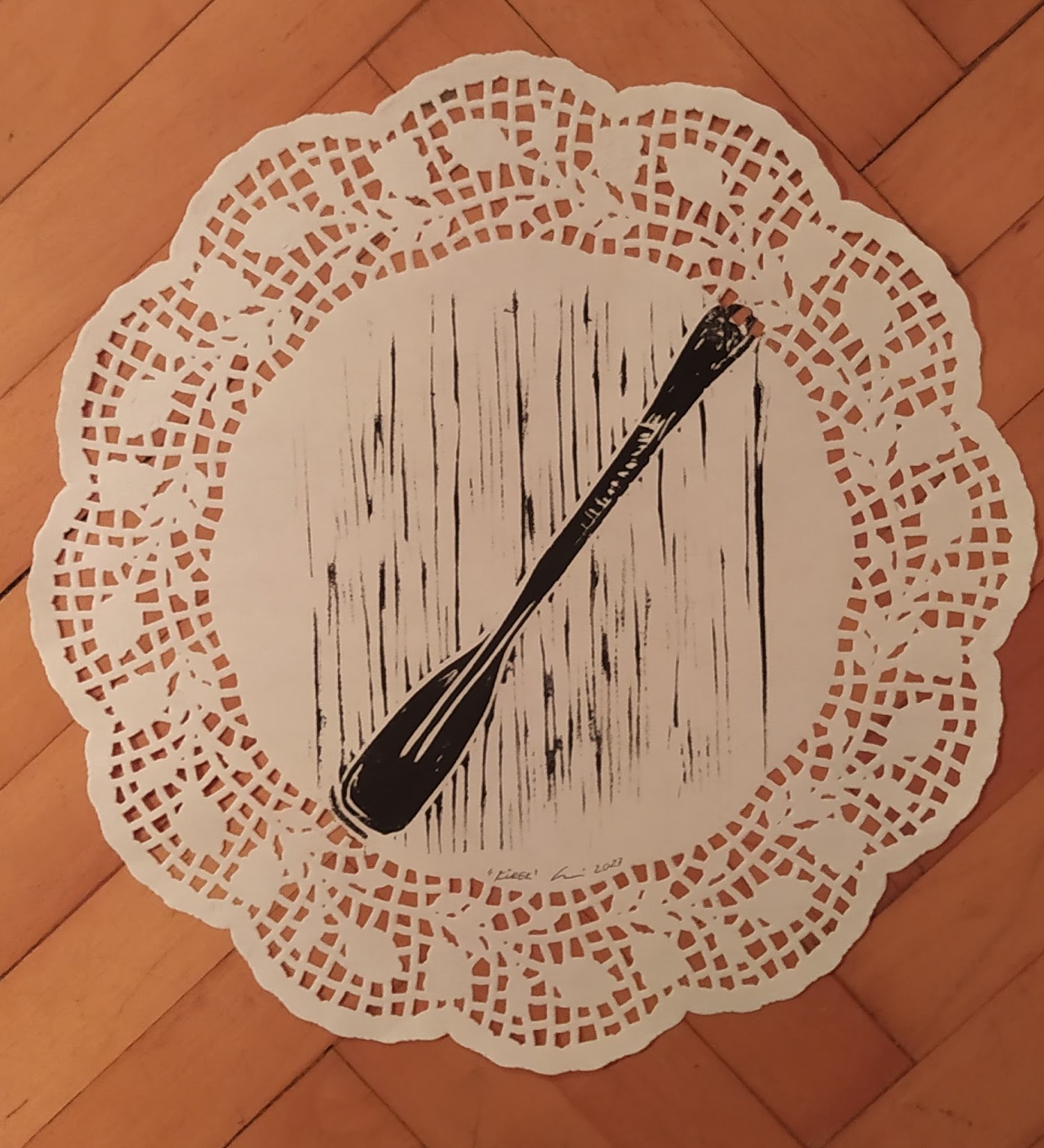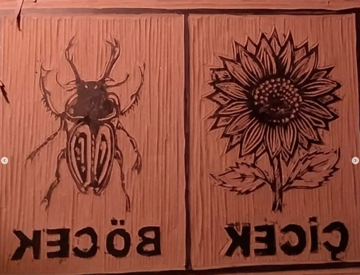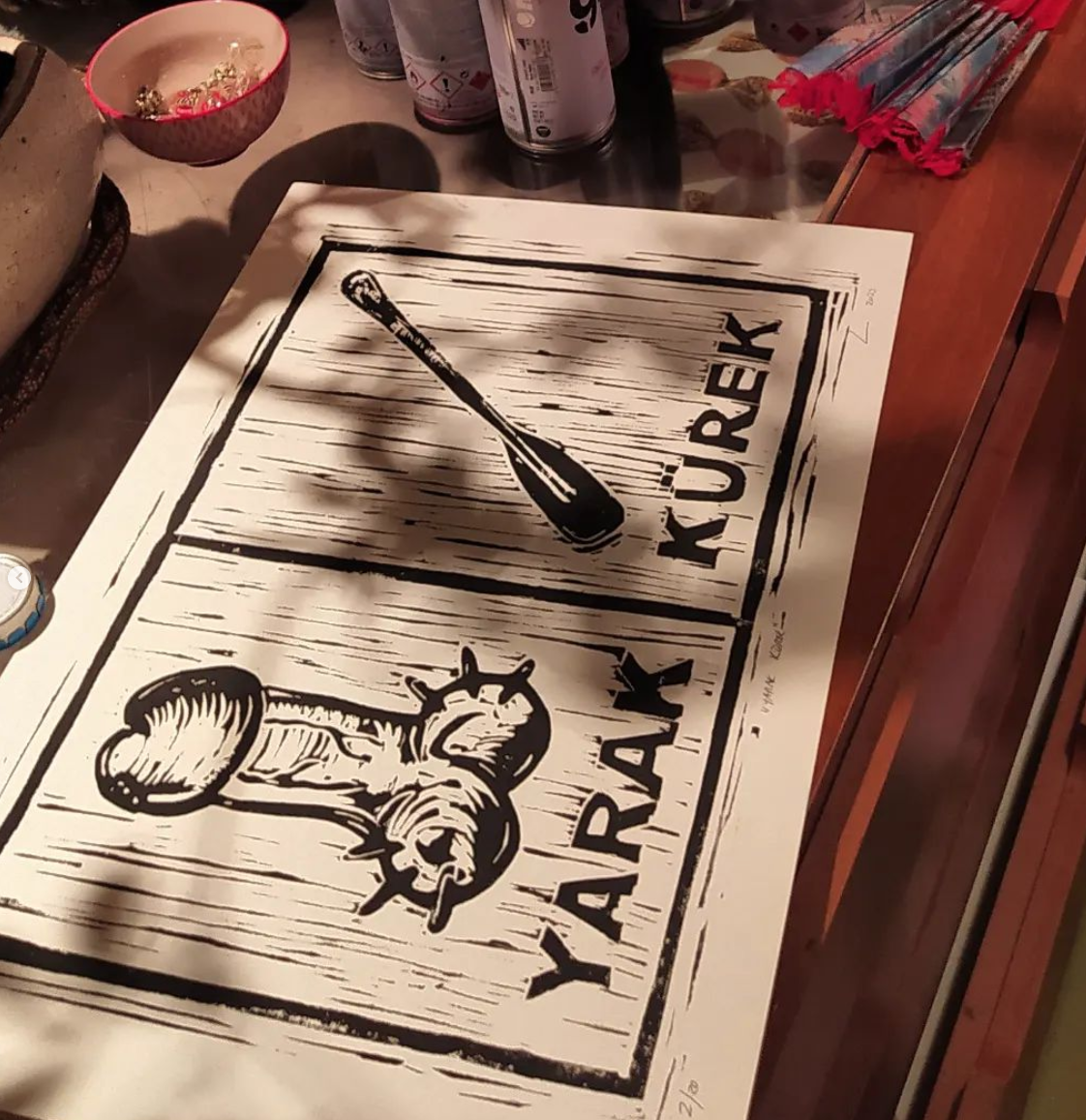 1995 yılında Boston, Massachusetts’te Güzel Sanatlar Müzesi Üniversitesi’nde eğitimime başladım. Fotoğraf, seramik, lateks/karma malzeme heykelcilik, mücevher yapımı (OHA! …öğretmenim sonradan bana dersi bırakmamı tavsiye etti çünkü ellerim kocamandı… haha… ama yaptığım havalı gümüş yüzüklerden bazıları hâlâ duruyor), çizim, resim ve şu anda aklıma gelmeyen daha bir çok ders alarak başladım. İkinci senemde almam gereken zorunlu dersler arasında gravür, oyma ve litografiyi de içeren baskı resim dersi de vardı. Baskı sanatsal çalışmalarım için mükemmel bir yol gibi göründü bana, farklı malzemelerle çalışmak, önce ahşap üzerine çizip sonra kazıyıp baskı yapmak ve bu şekilde imgeyi çoğaltmak hoşuma gitmişti. Özellikle de çalışmalarımı çoğaltabilme fikri bana müthiş cazip geldi, stencil yapmaya da sanırım bu nedenle başladım. O zamanlar çok sabırsız bir sanatçı olduğum için, ki hâlâ da öyleyim, son ürünü çabucak görmek istiyordum ve adım adım işleyen bir süreç olarak baskı benim için en uygun yol gibi görünüyordu. Zamanla comatex, linoleum gibi başka malzemelerle de çalışmaya başladım. Böylece okulun son iki yılında daha çok baskıya odaklandım. Nedense okuldayken serigrafi derslerini almamıştım ama 2000 yılında İstanbul’a döndükten sonra sevgili dostum, fotoğrafçı Kenan Sunar’la beraber bir serigrafi baskı stüdyosu kurduk. Kendi kendimize çözmeye çalıştığımızdan bu süreci öğrenirken bazı zorluklar da yaşadık ama sonunda bir sürü sanat eseri ortaya koyduk. O dönemde gerekli para akışını sağlayacak tişört baskılarını da bu şekilde yapmaya başladım. Ne yazık ki üniversite yıllarımın büyük bir kısmını belgelemedim, ama burada gördüğünüz eserlerin çoğunun satılmış olduğunu söyleyebilirim. Bir zamanlar Madam Butterfly’ın ev sahipliğini yaptığı bir evde üç kişilik bir sergi için yaptığım duvar oymaları da bunların arasında yer alıyor.