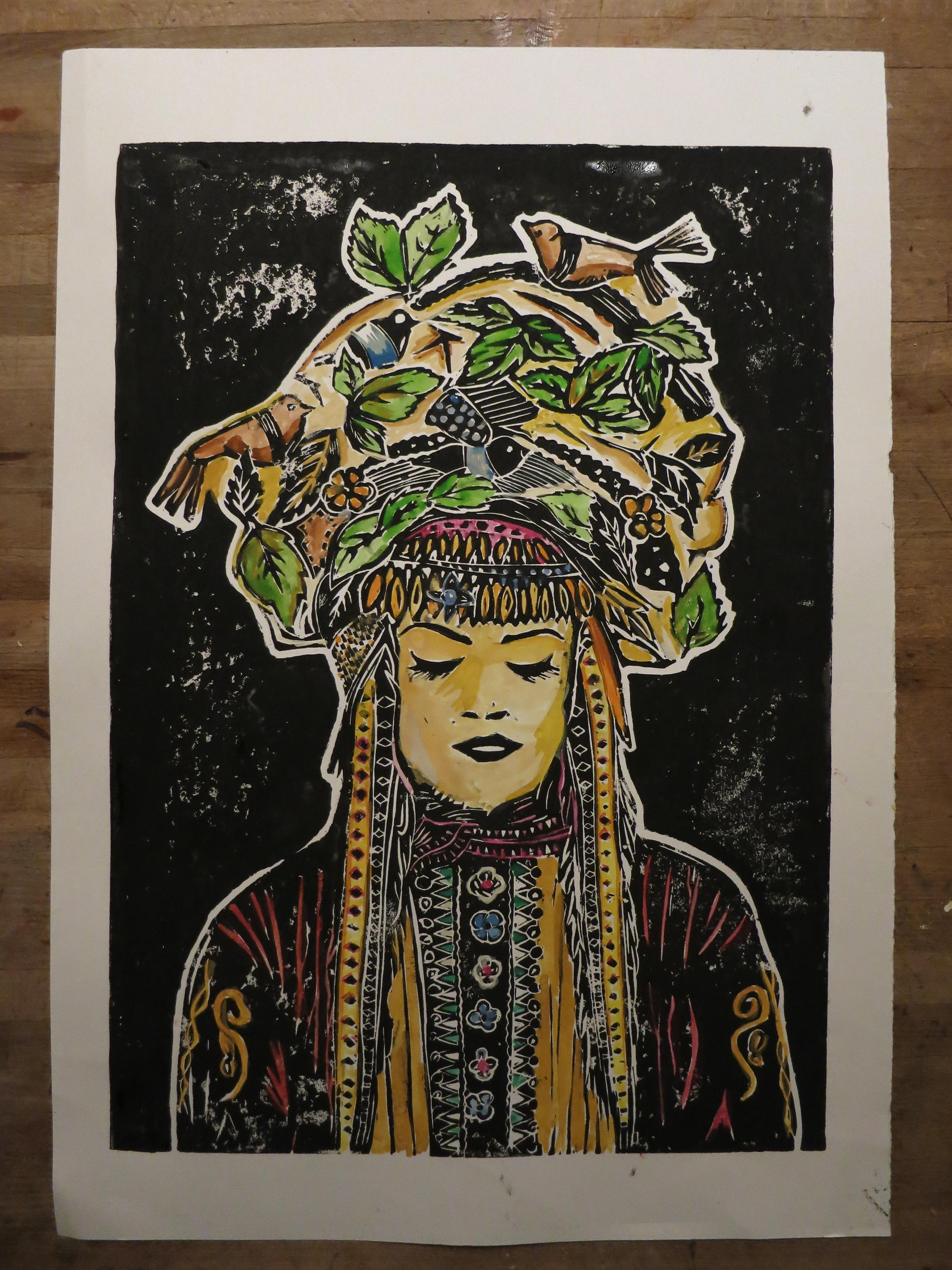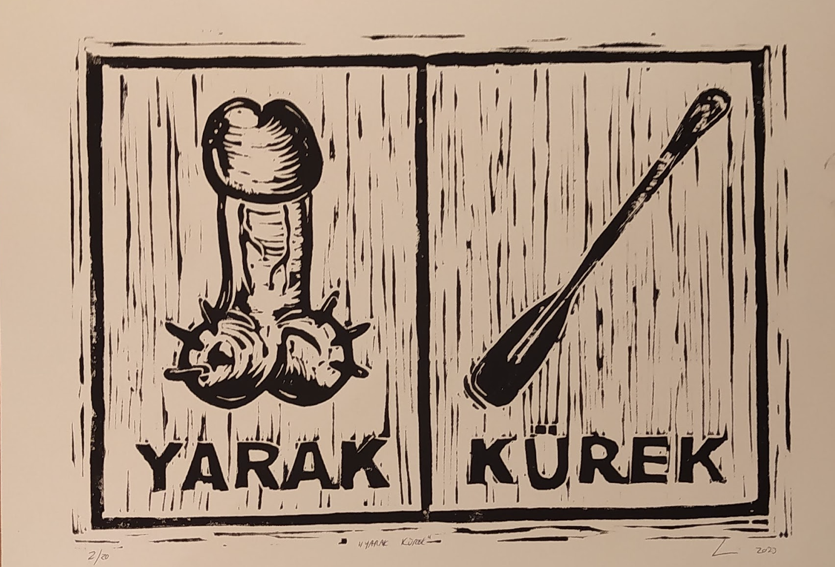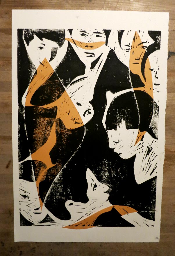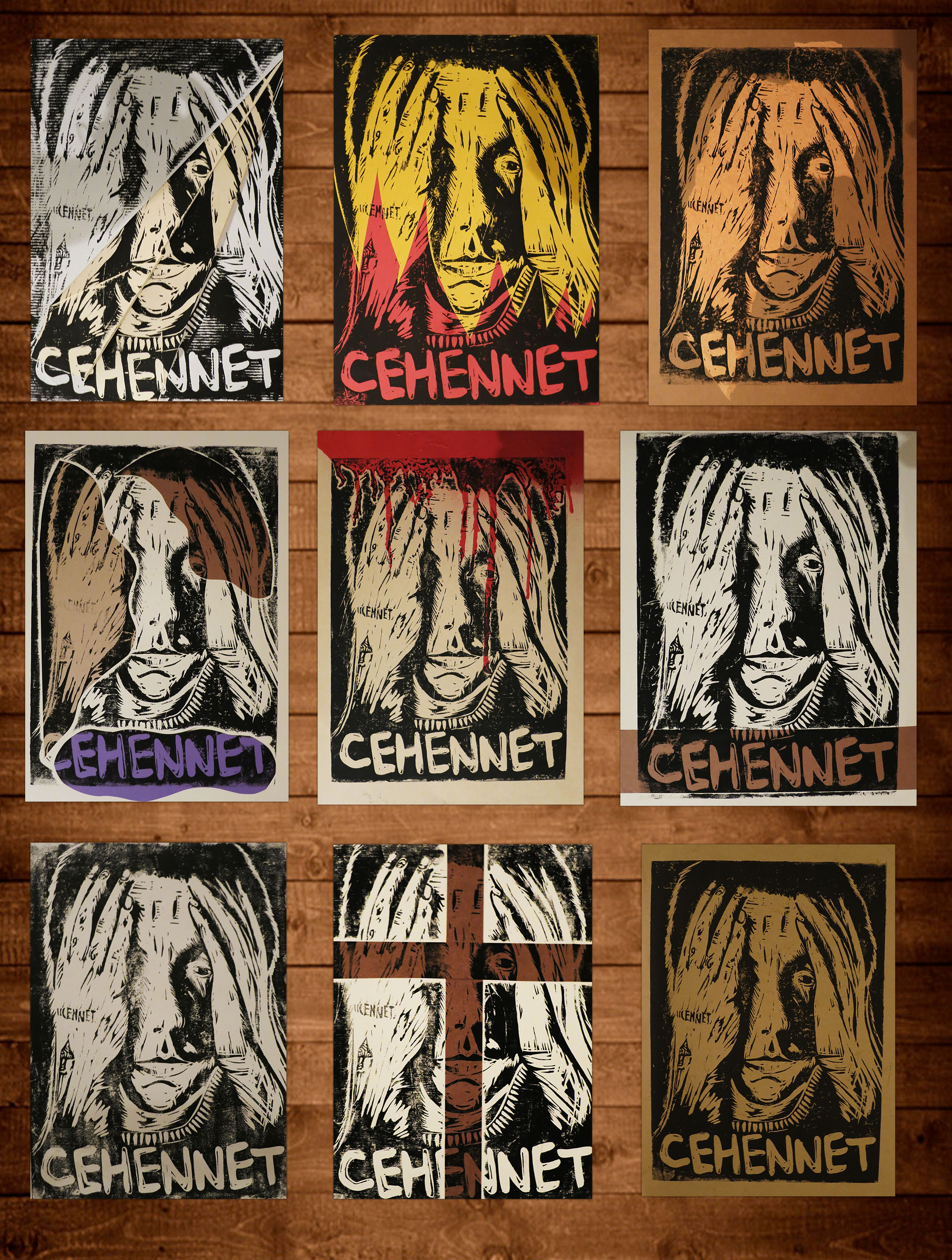 Cehennet - 2nd Edition 2016 Heavenell Linocut - mixed media 48x34cm