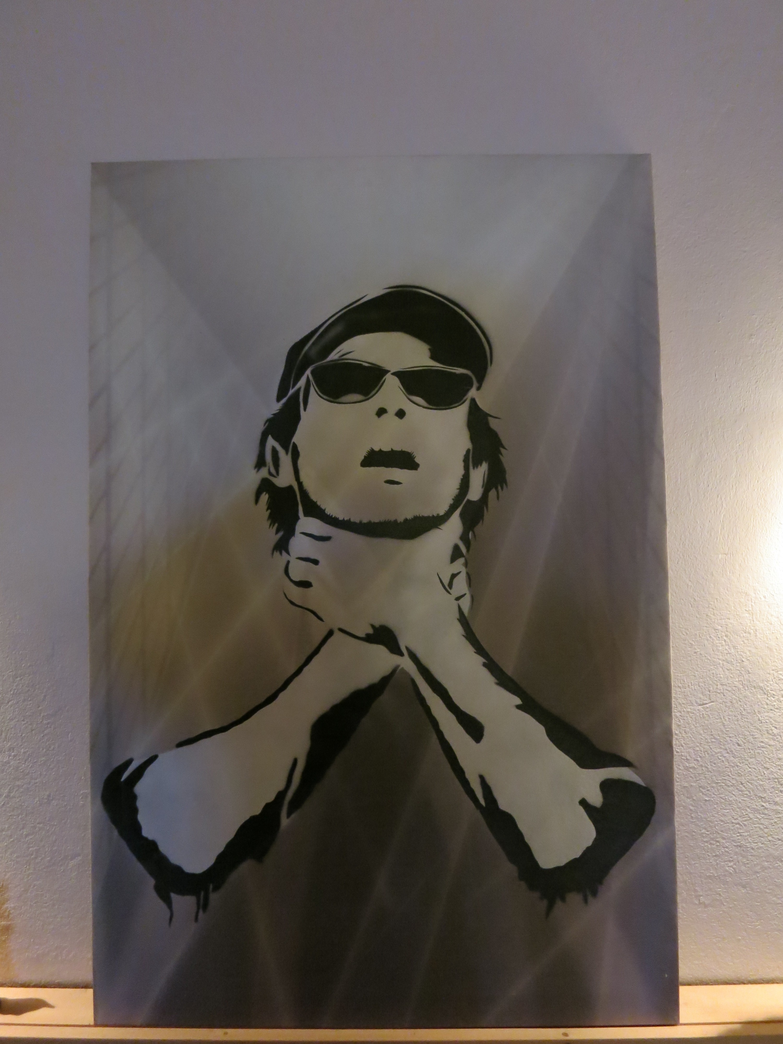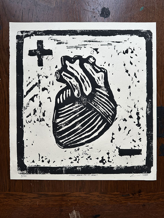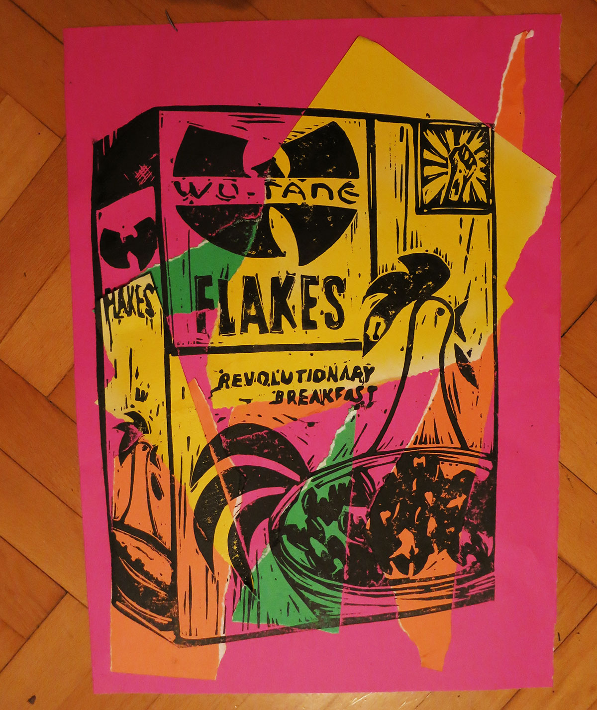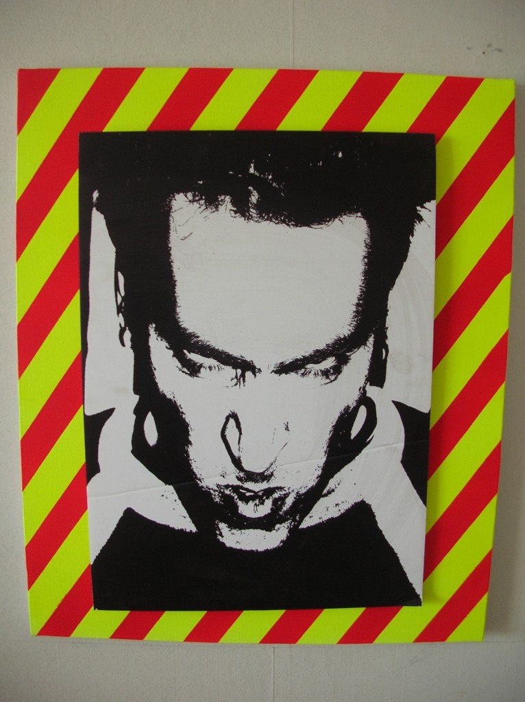 In 1995 I started going to art school at  The School of the Museum School of Fine Arts in Boston, MA. I started out by taking classes in photography, ceramic, latex/mixed material sculpture, jewlery making (WTF! ...my teacher later on advised me to drop the class because my hands were too big..haha..but I still have a couple of cool silver rings I made) drawing and painting and many more classes that dont come to mind right now. In my second year, with the mandatory classes assigned to me, I started printmaking classes which included woodcutting, etching, and lithography. Printmaking seemed a great way of expressing my art work, working with different materials first drawing onto wood, then carving it out and then printing and reproducing the image. Especially the fact that I could reproduce my work seemed very enticing to me which is probably why I started to do stencils.  As I was, and still am a very impatient artist, wanting to see the final product instantly, printmaking seemed like the best direction for me to go as it is a step by step process. As time progressed I staretd working with other materials such as comatex and linoleum.