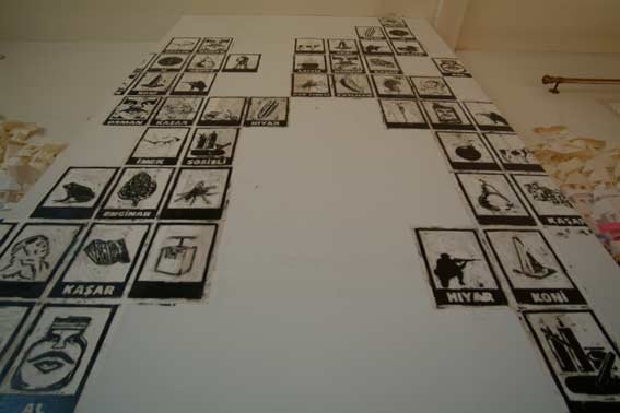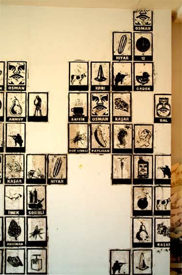 So my final two years of school mainly focused on printmaking. For some reason I did not take up silkscreen printing while in collage but after moving back to Istanbul in the year 2000 I set up a silkscreen printing studio with my good friend and photographer Kenan Sunar. At first we had some difficulties learning the process as we tried to figure it out by ourselves but I ended up producing a whole bunch of artwork and also started to print t shirts which at the time was a much needed cash flow. Unfortunately I did not document the majority of my work during my collage years but I have to say most of the pieces that are shown here have been sold!. Included is also some wall carvings I did for a 3 man show in an apartment one time owned bl Madame Butterfly!.
