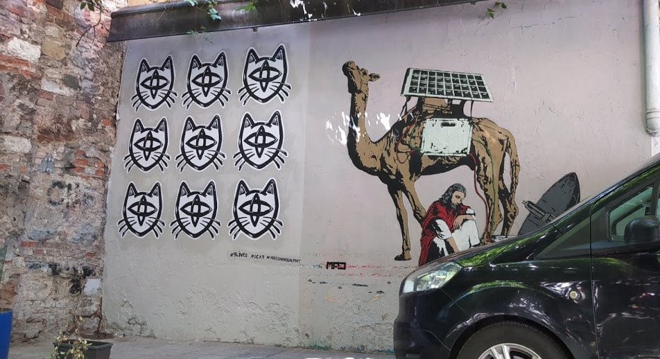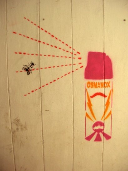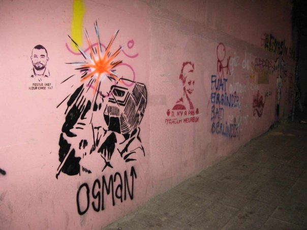 When I decided to move back to Turkey in 2000, I found that their were really no stencil work on the streets. I at the time was not very experienced in this area but I wanted to have a go anyhow. I started out with stenciling the Obey image mainly in Cihangir and Taksim. Shepard Fairey's was all for getting the Obey image out as much as possible and made it accessible for everyone to use it as they pleased. After some time I thought that I should add my own touch to the image so I added a mustache to the image and put OSMAN under it. I thought it would be a good way for people to connect with the image intertwining eastern culture with the west. Unfortunately I have received comments and have read articles saying that I stole the image and this and that. But if only had they done a little more research as I have done numerous interviews regarding this subject. But who gives a shit! Their is a saying by Jean-Luc Godard and he says "It's not where you take things from, it's where you take them to".