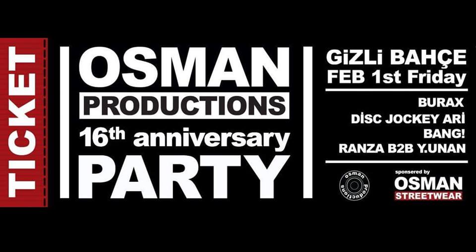OSMAN PRODUCTIONS 16th anniversary Party @ Gizli Bahçe