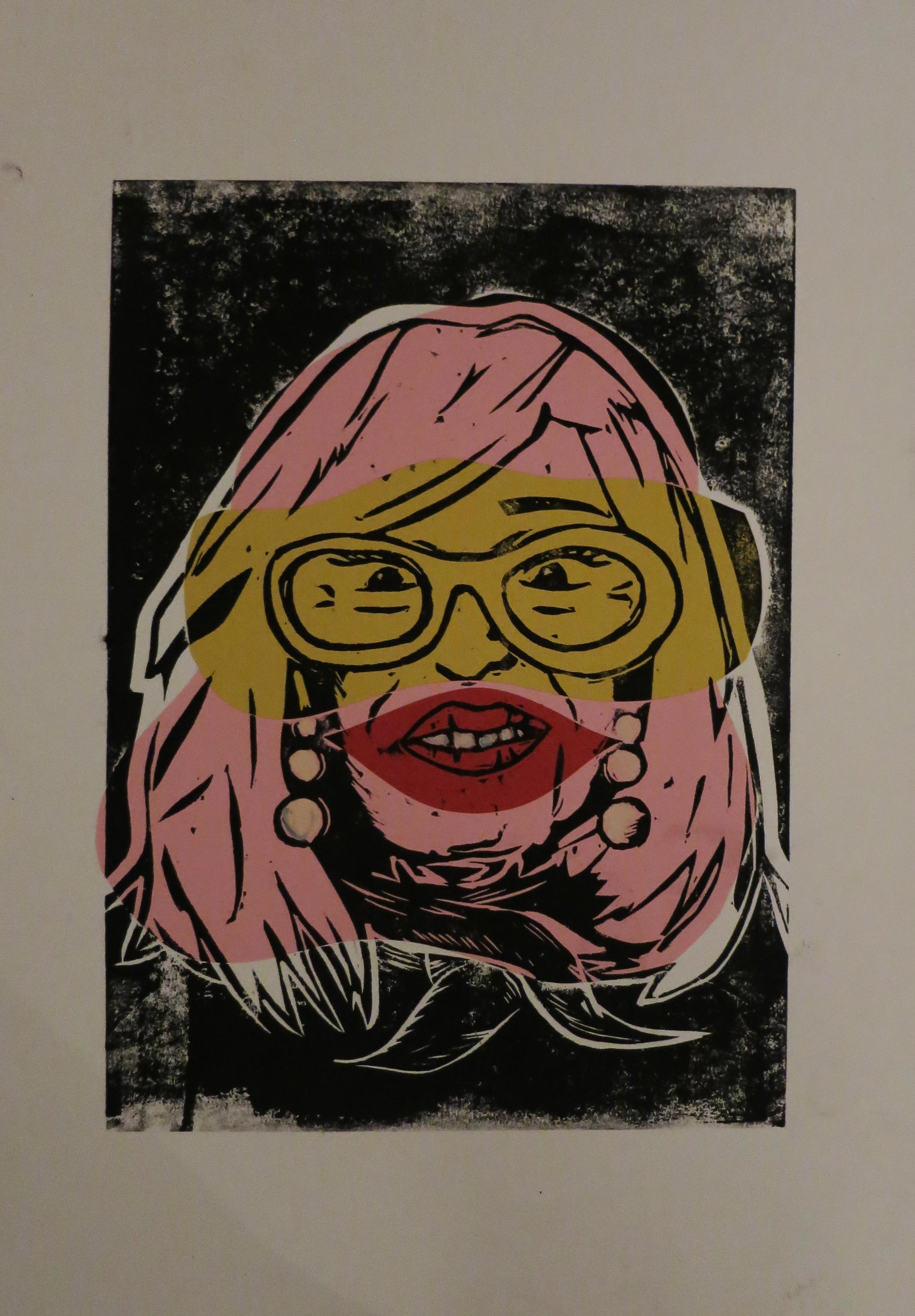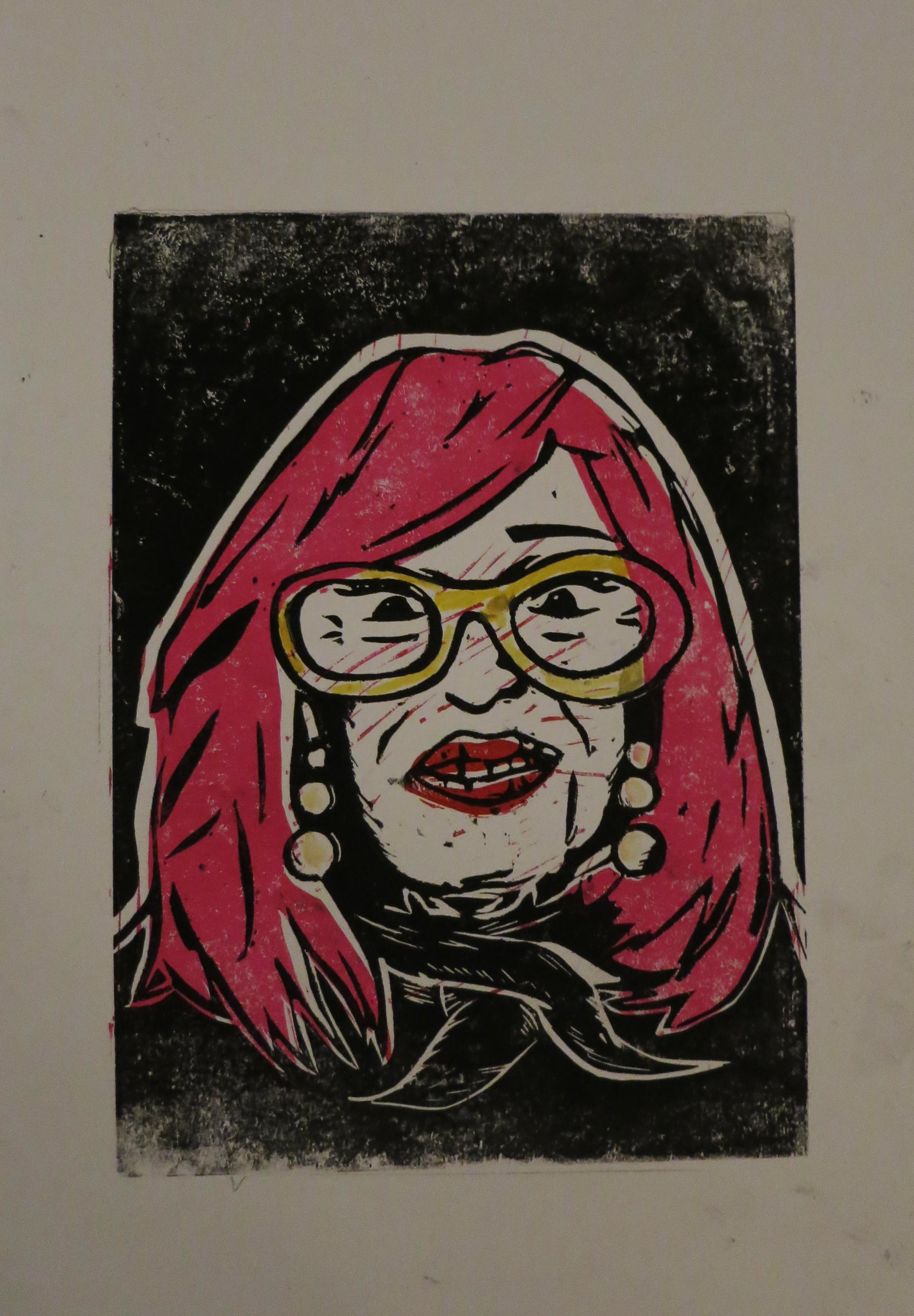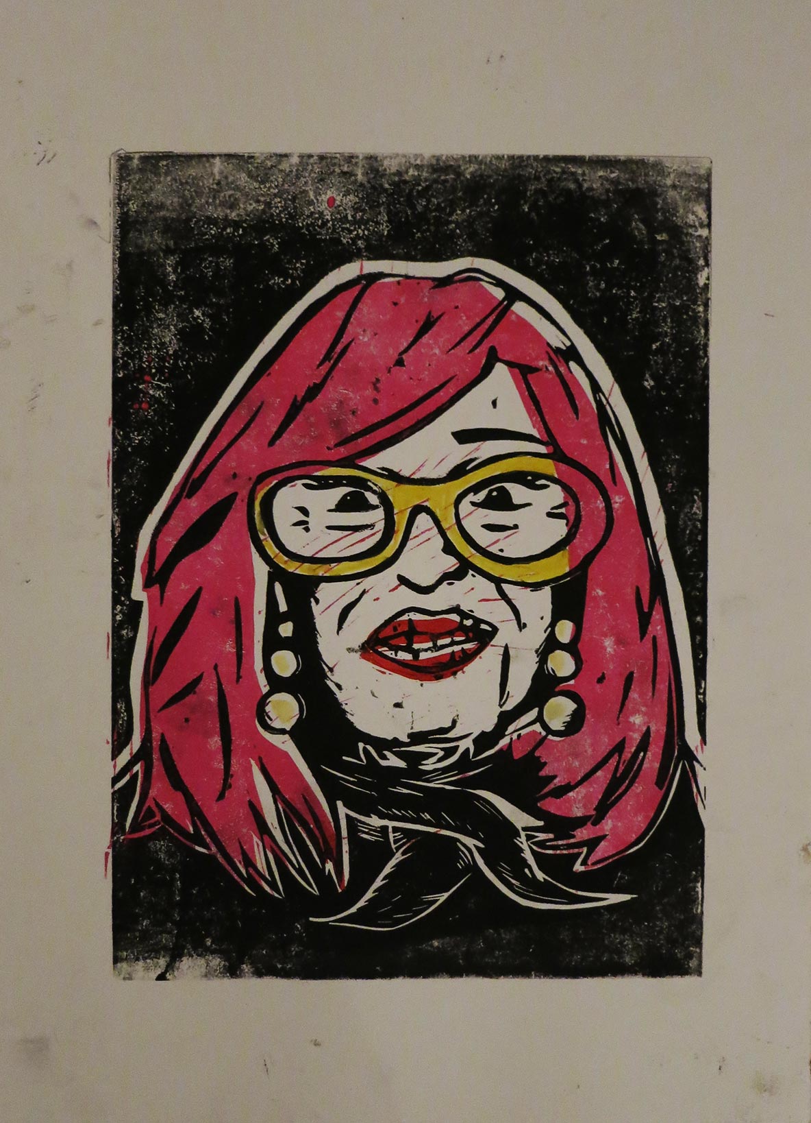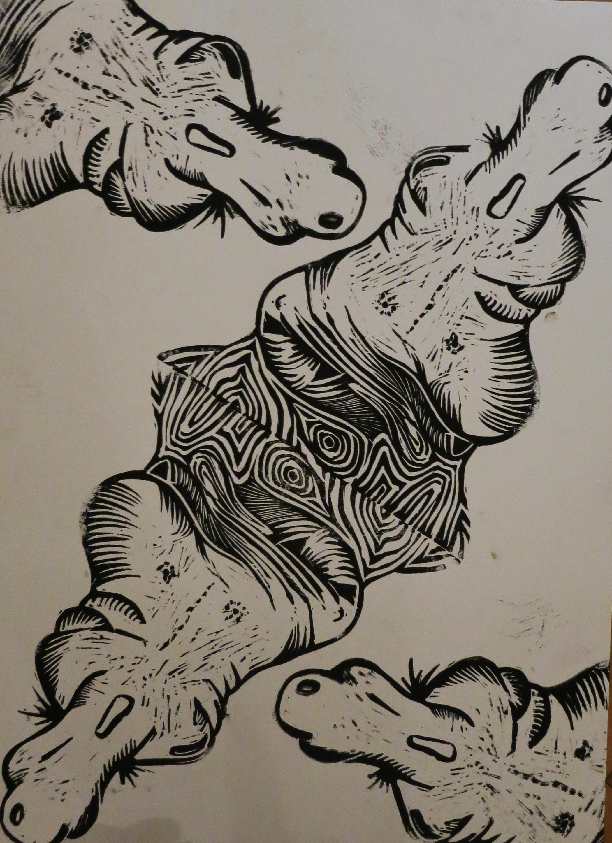 “Leftover love handle meat” linocut 2019 – Ari Alpert