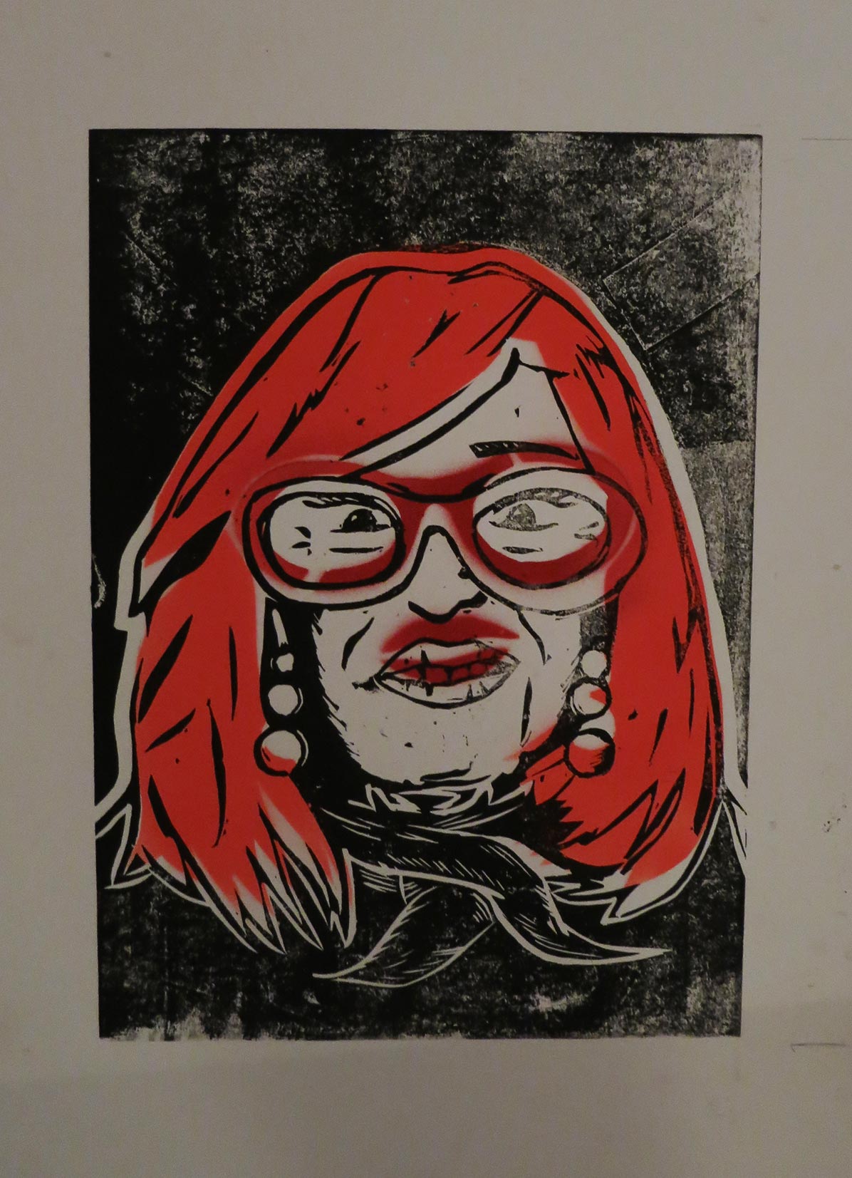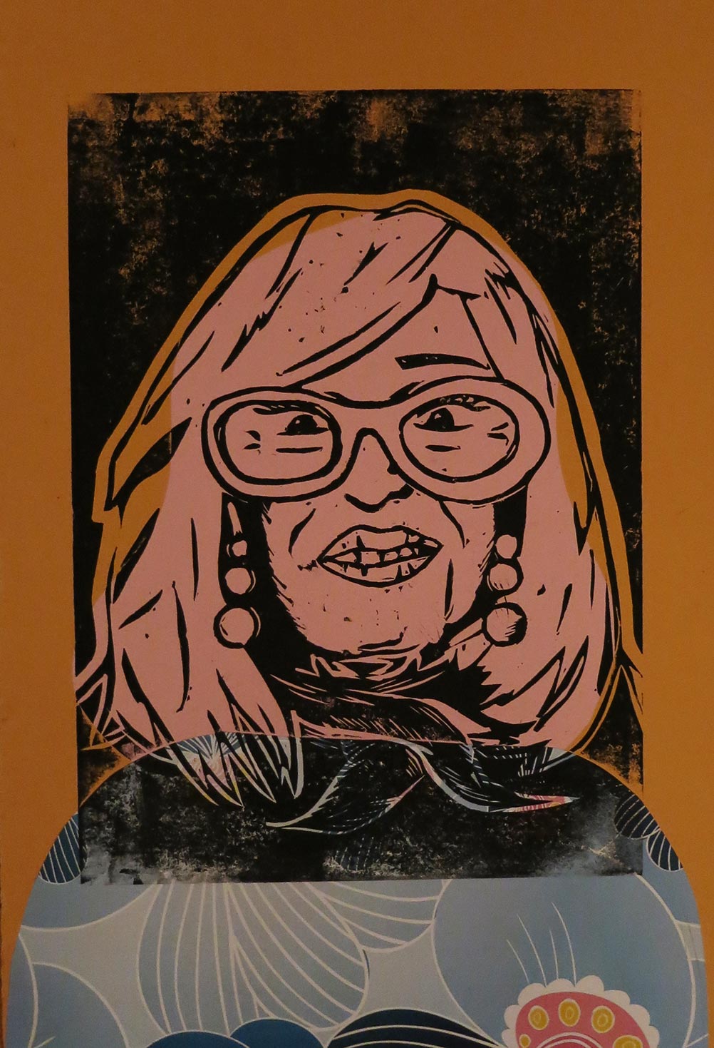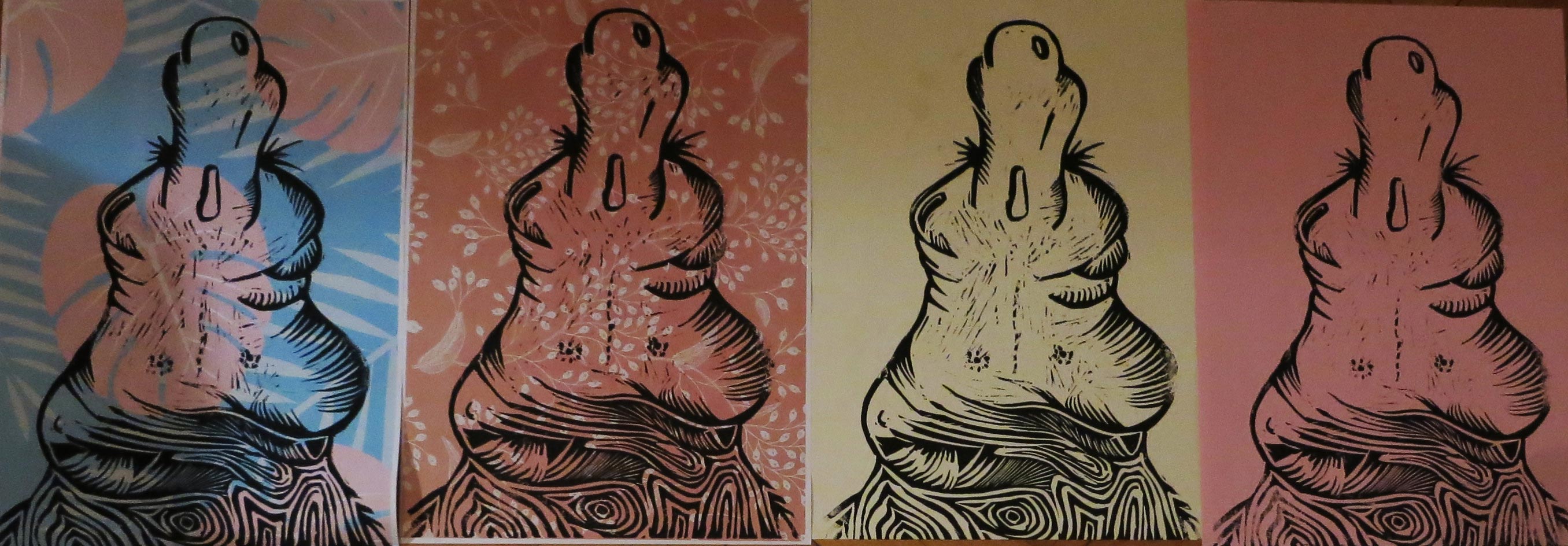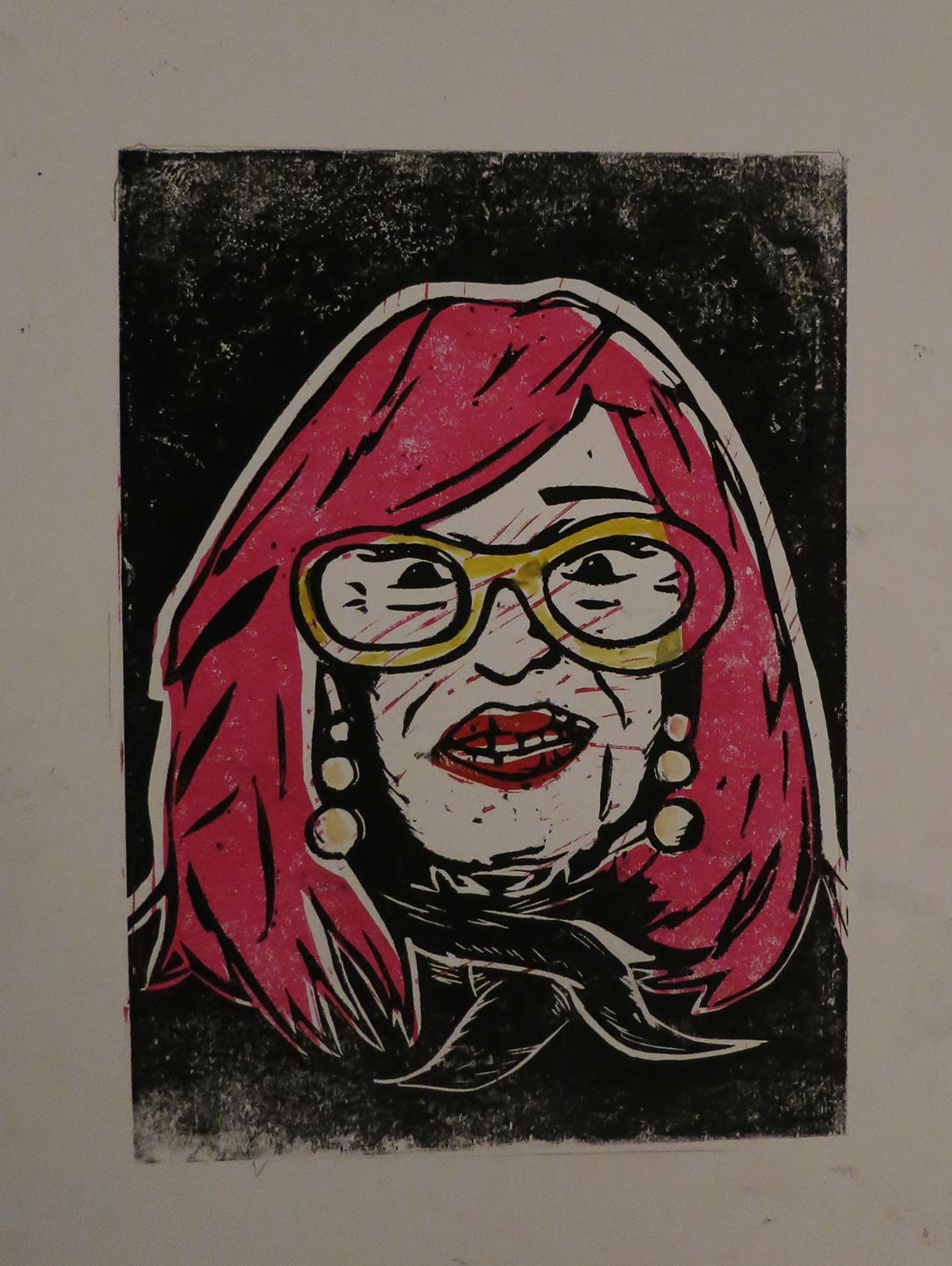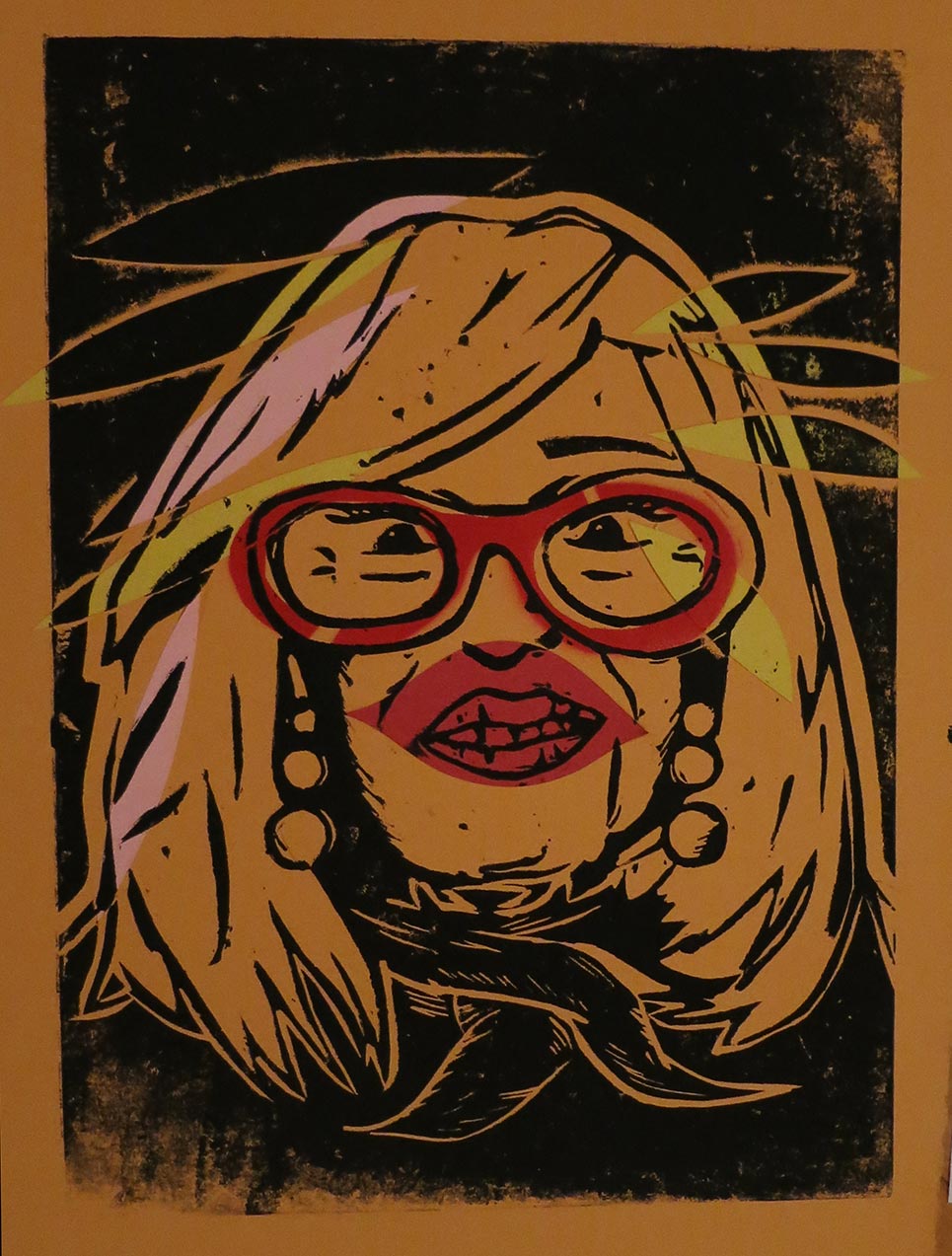 “Leftover love handle meat” linocut 2019 – Ari Alpert