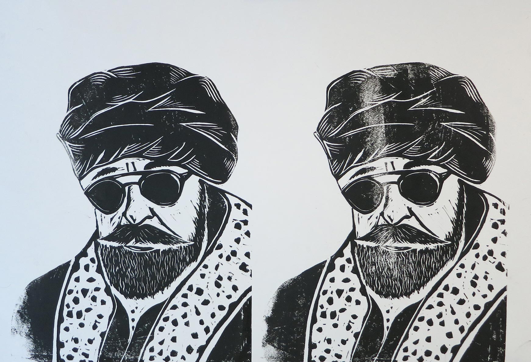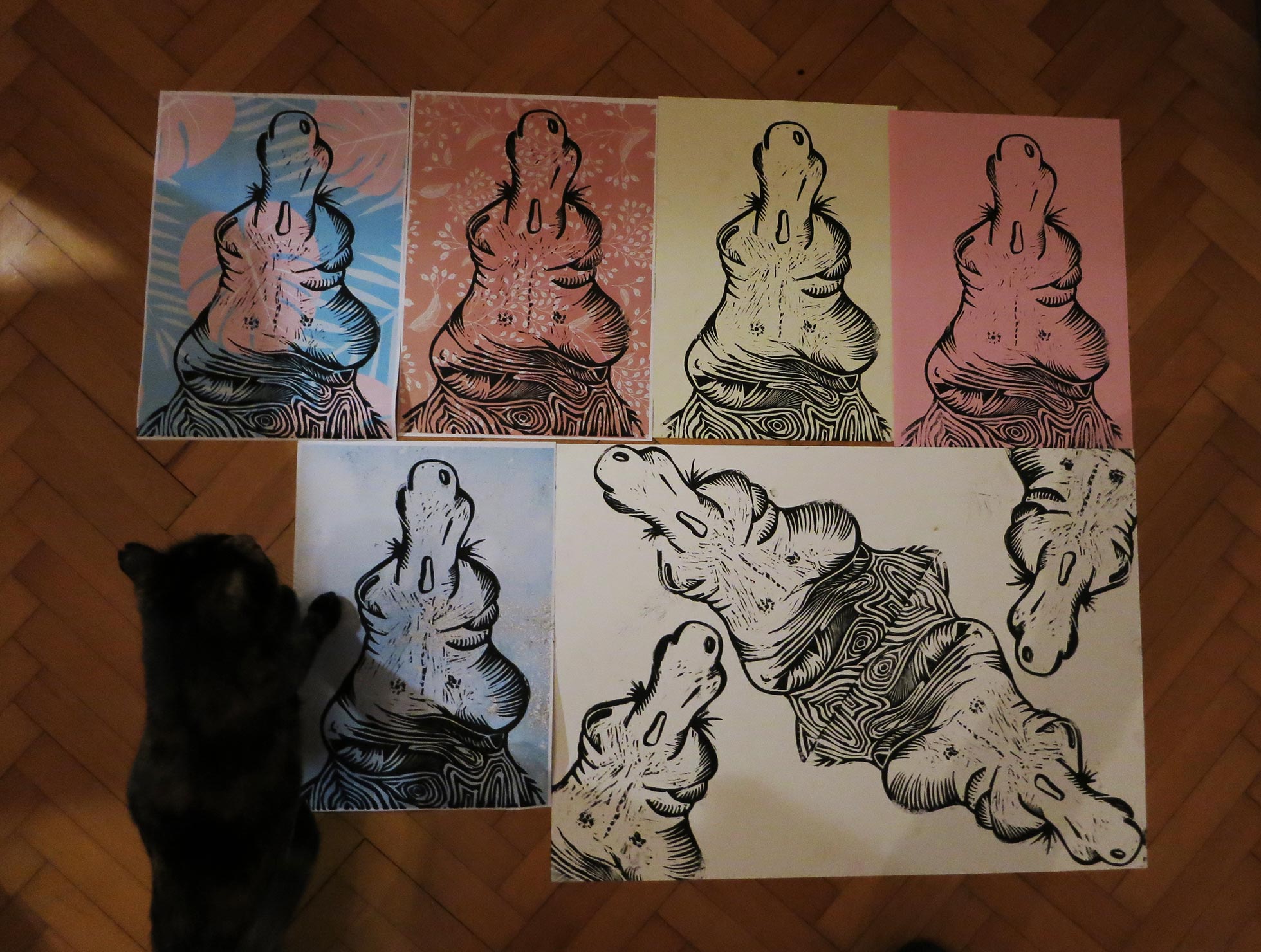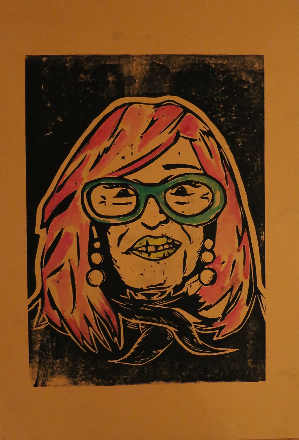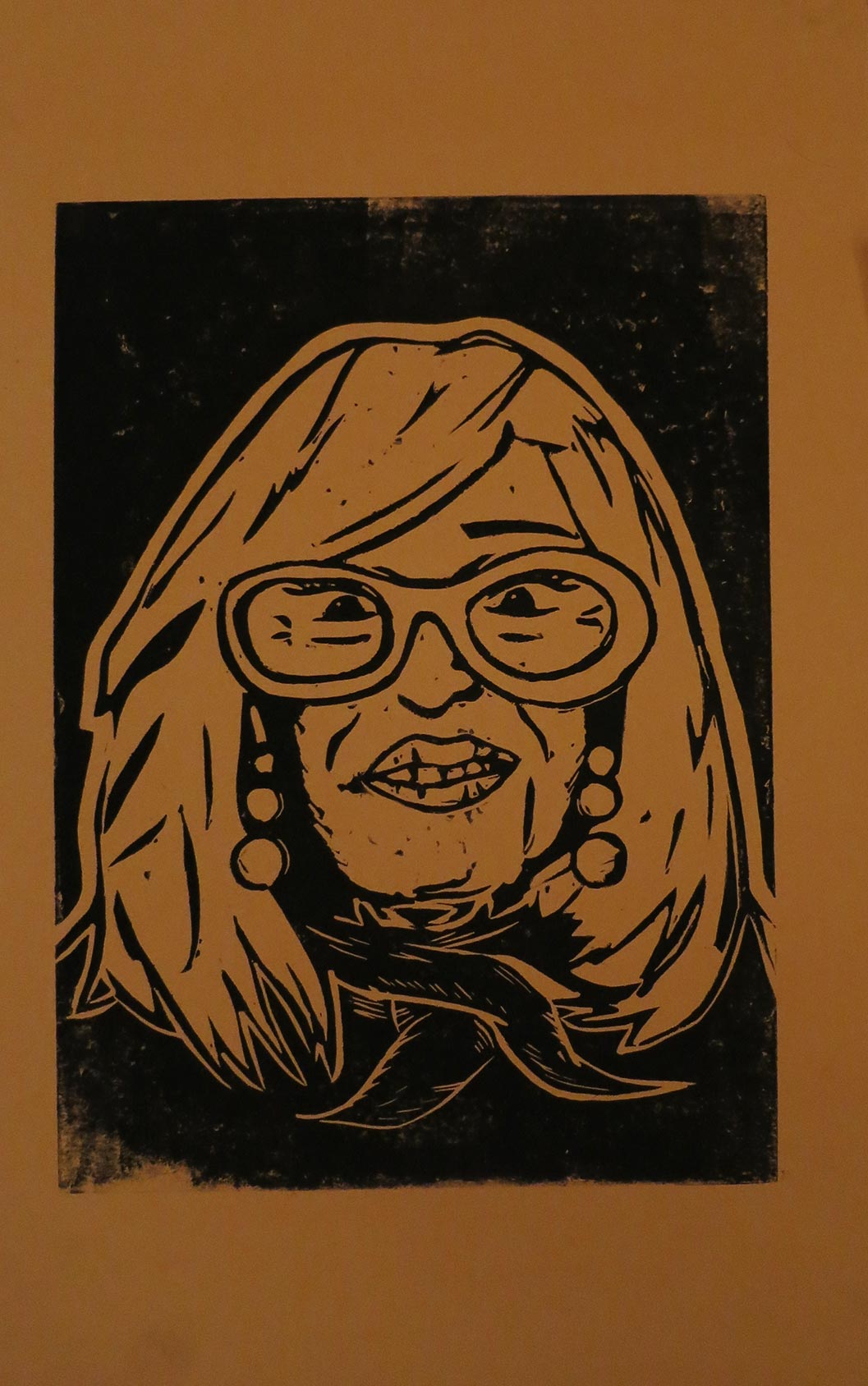 “Leftover love handle meat” linocut 2019 – Ari Alpert