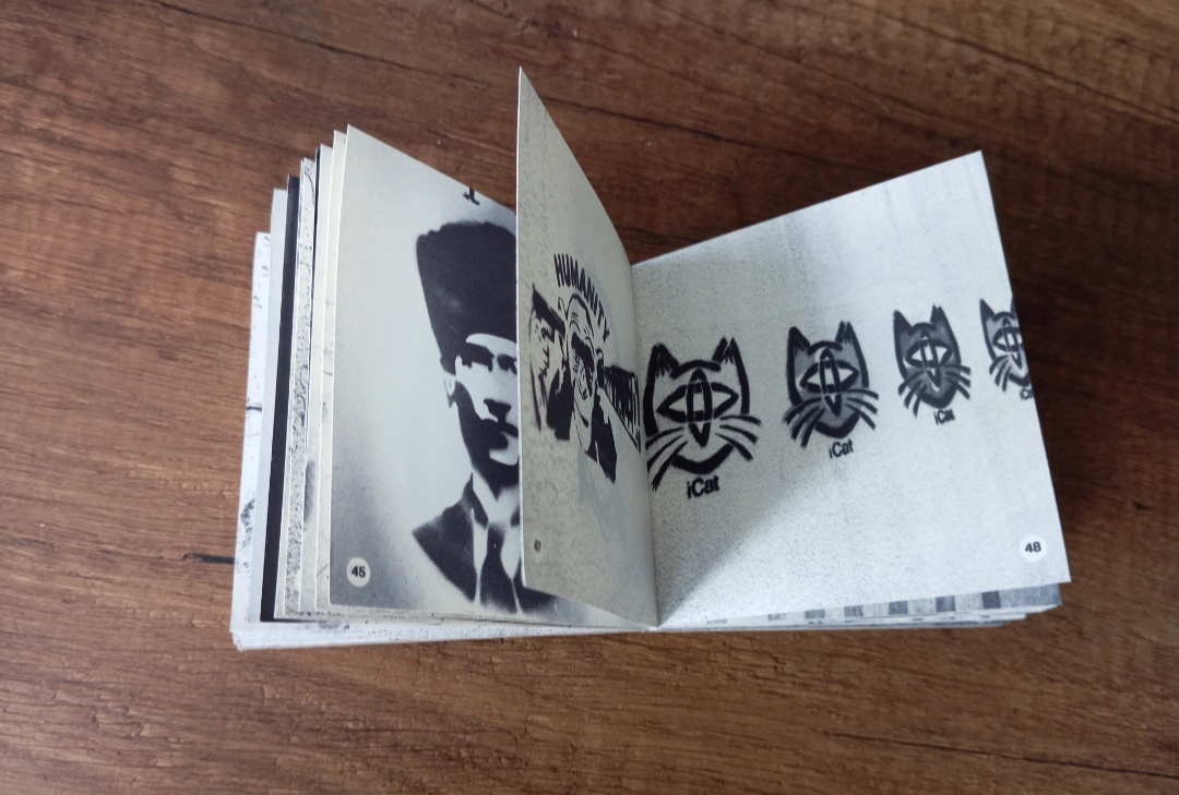 This handmade book is an archive of stencil works found on the street walls of Istanbul. It brings together portrait-focused templates from a diverse archive seen and photographed between 2003 and 2025. Stencil; It is a printing and reproduction technique frequently used in public spaces for artistic, political, or commercial purposes. With its ephemerality and repeatability, it leaves an anonymous mark on the visual memory of the city. It goes beyond individual forms of expression and becomes an indicator that shapes social memory and reminds us of the dynamics of the street.