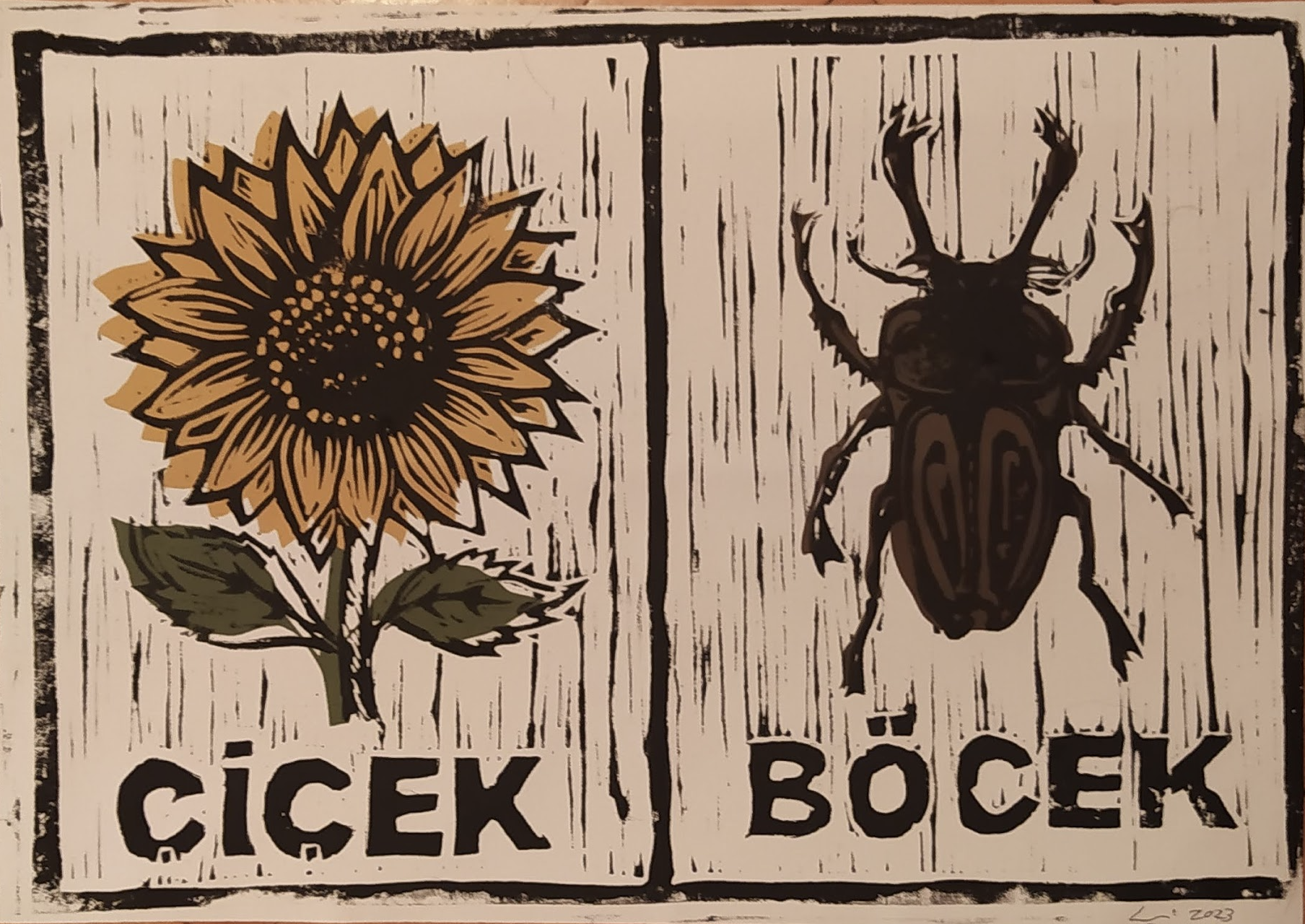 1’inci seri: 🌻”Çiçek Böçek” 🦗1/20 Edisyonlu Linol Baskí/Mixed Media -50x35cm – 2023 – DM me to purchace limited editions.