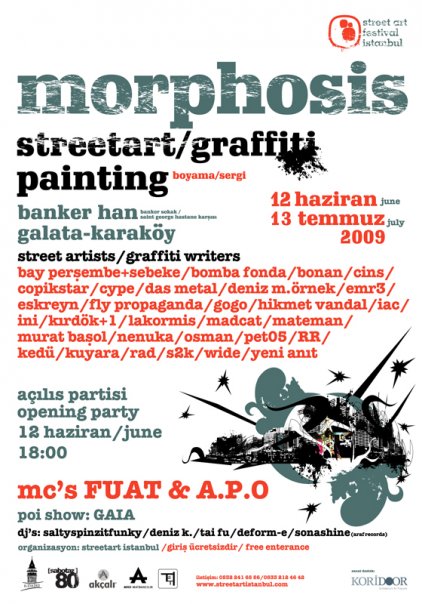 StreetArt İstanbul, her katı 222 metrekare olmak üzere 6 katlık bir yapı olan Banker Han’ın üç katını Kooridoor Çağdaş Sanat tarafından desteklenen Morphosis etkinliği çerçevesinde, yaşayan bir mekana dönüştürecek.