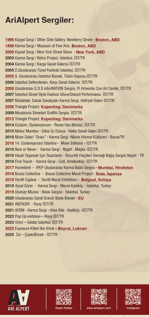 sanatçılarıyla paylaştı. Baskı, stencil, gravür ve duvar resmi çalışmalarıyla İstanbul’dan