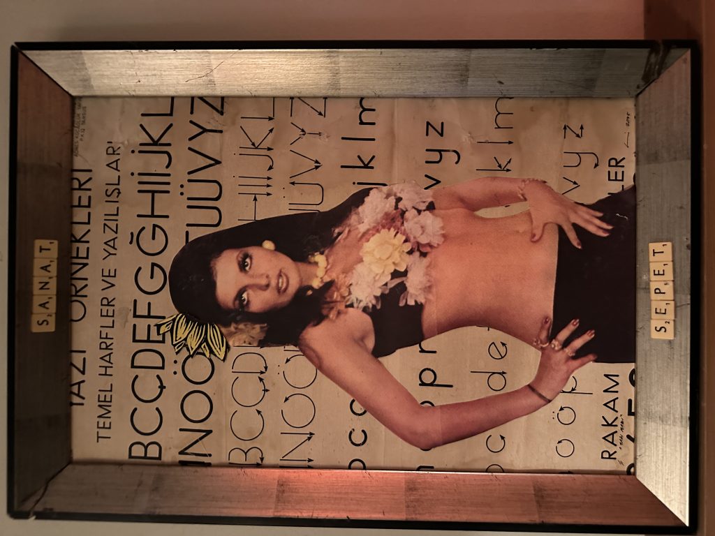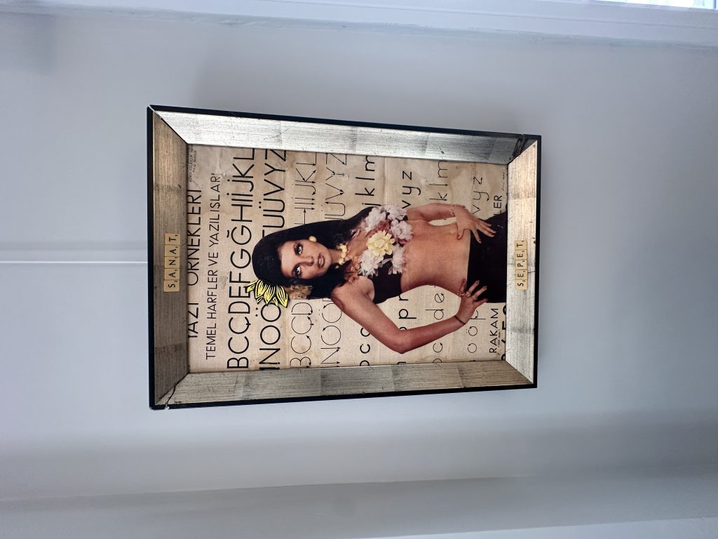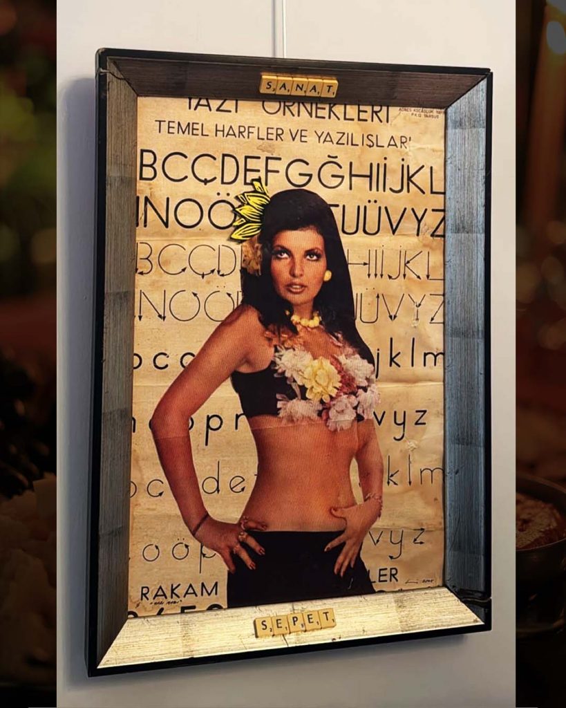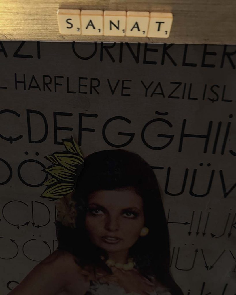 The first piece brings together a figure taken from a Turkish film poster with an old handwriting chart I found in an abandoned primary school in Kaş, Antalya. A surface once meant to teach letters now carries memory, cinema, and time.