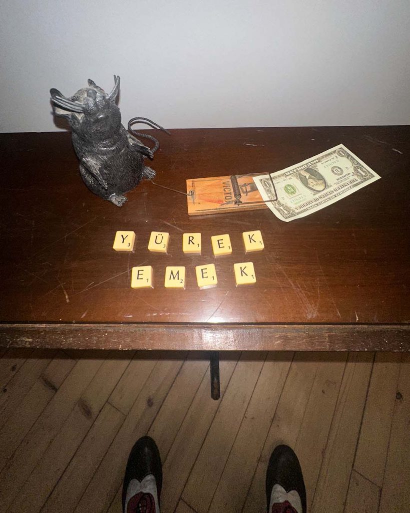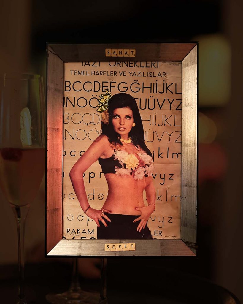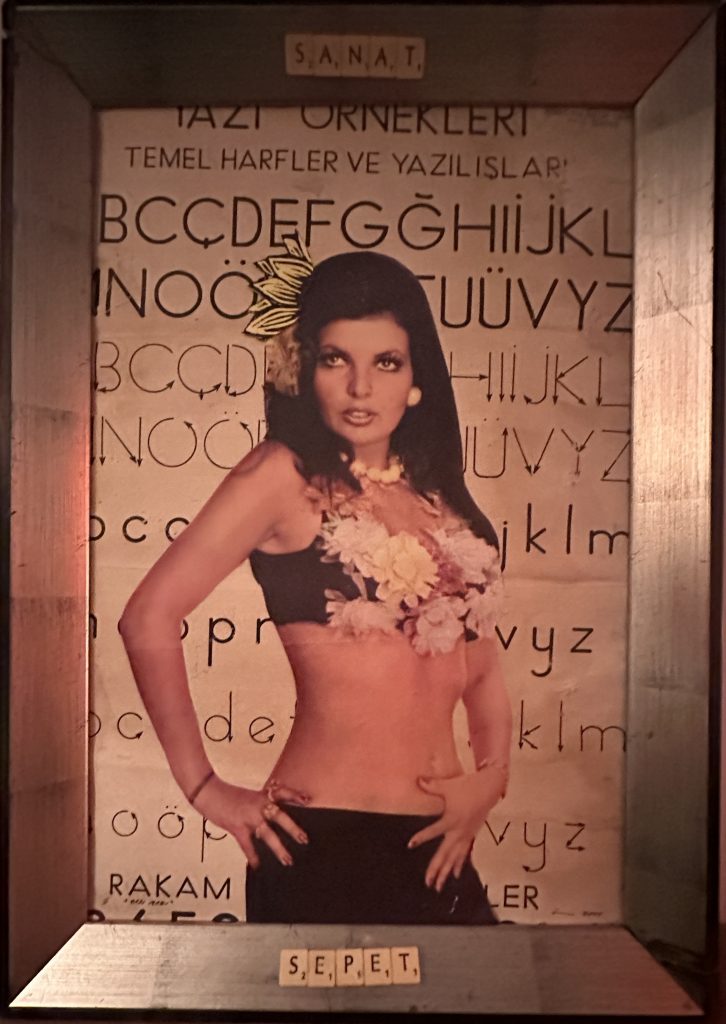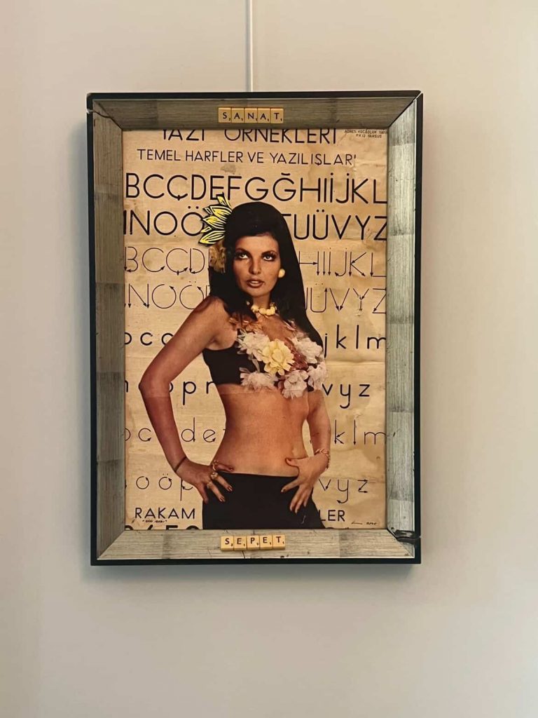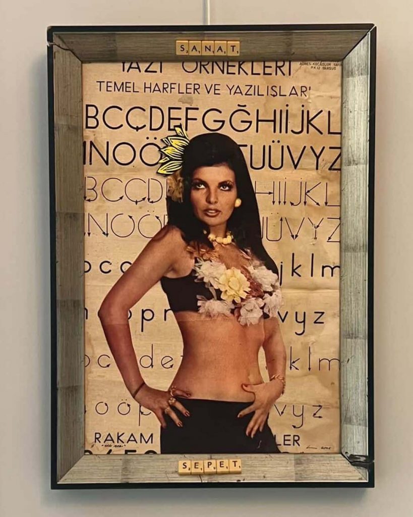 The first piece brings together a figure taken from a Turkish film poster with an old handwriting chart I found in an abandoned primary school in Kaş, Antalya. A surface once meant to teach letters now carries memory, cinema, and time.